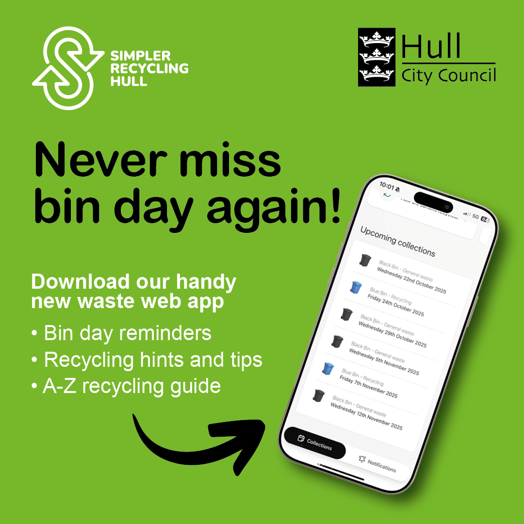 Hull City Council has today (Thursday 12 March) officially launched a new waste and recycling web app, so you never miss a bin day again!