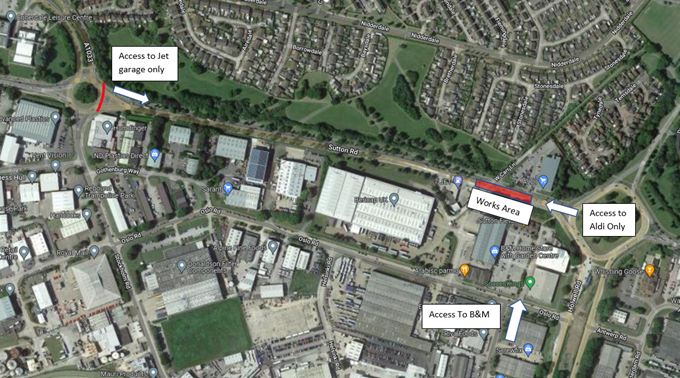 - Access to and from the Jet Garage only will be via Sutton Road from Ennerdale Roundabout, and will be signed in advance.