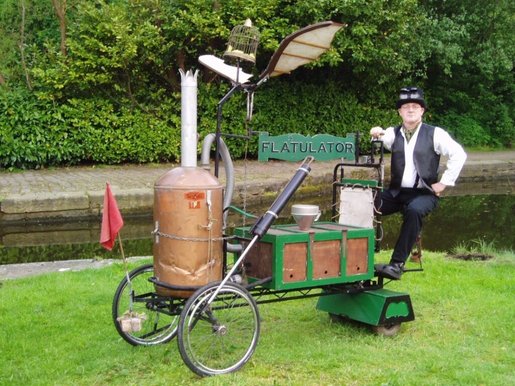 Seemingly powered solely by Brussels sprouts, the contraption is piloted by the often unrecognised, and usually confused, Victorian professor Keith Robinson.