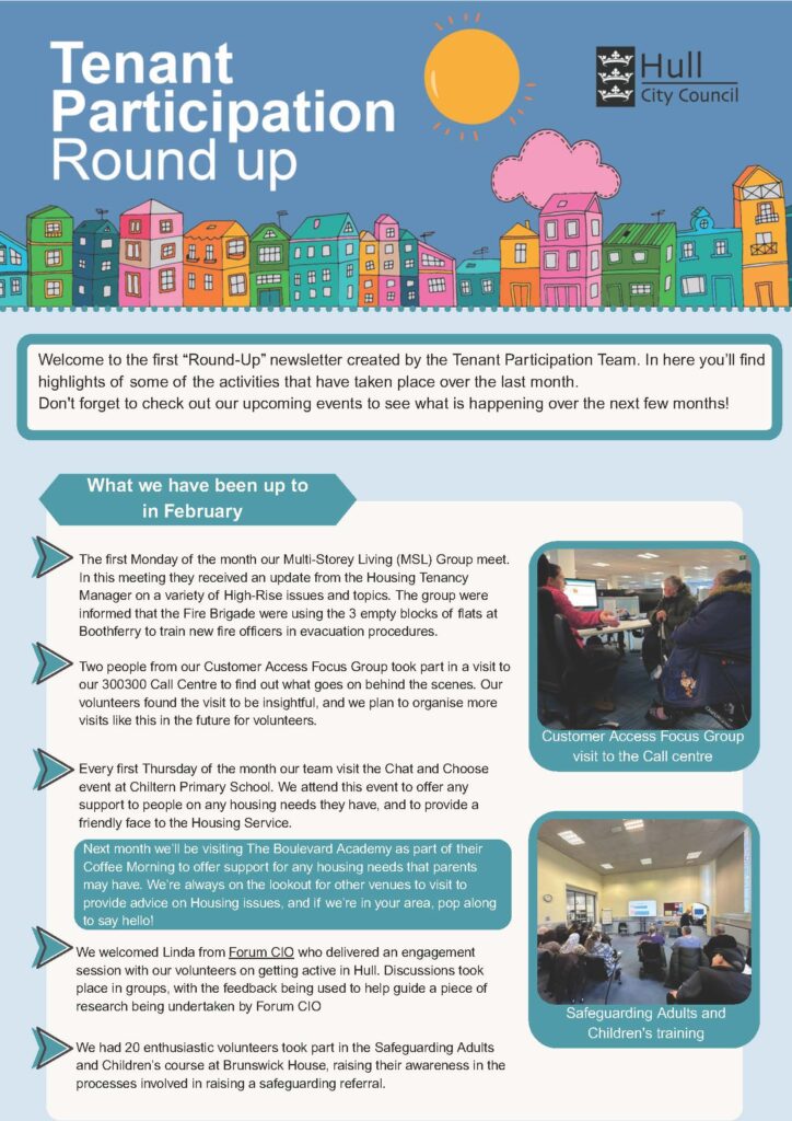 Welcome to our “February Round-Up” newsletter created by the Tenant Participation Team.